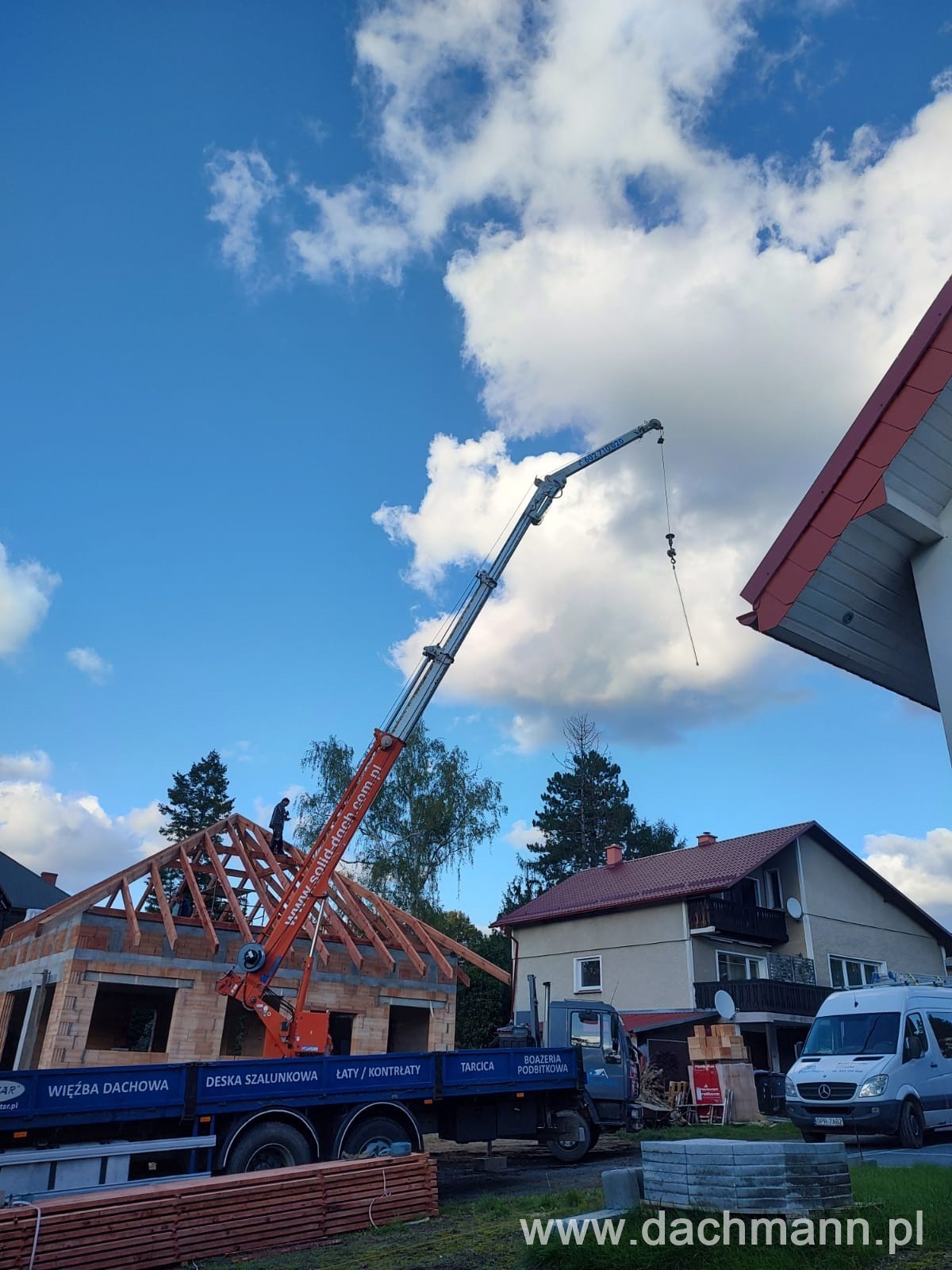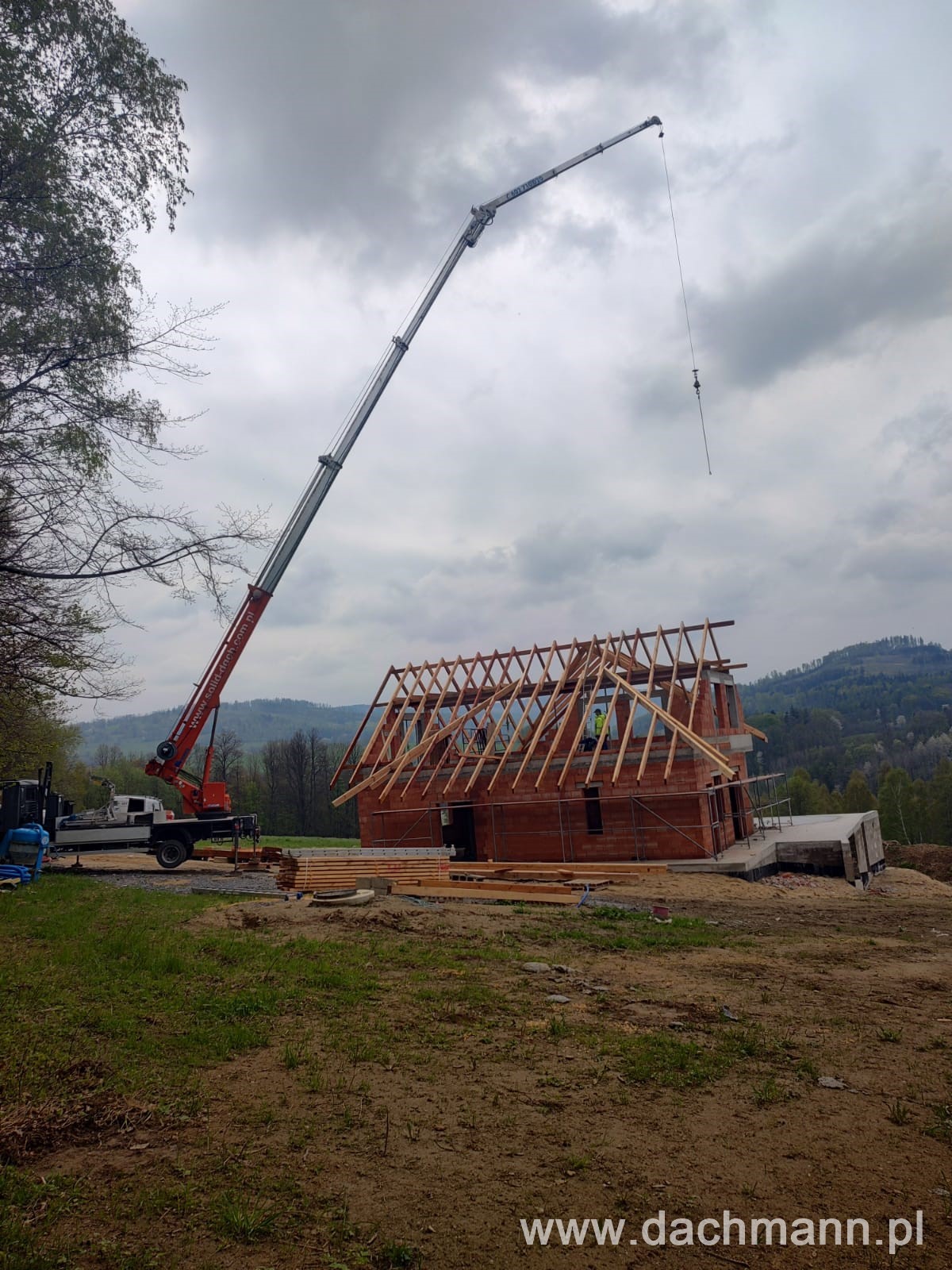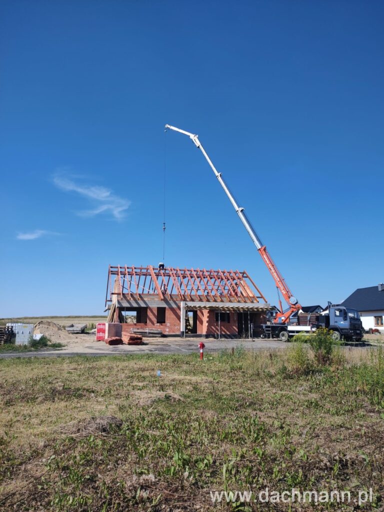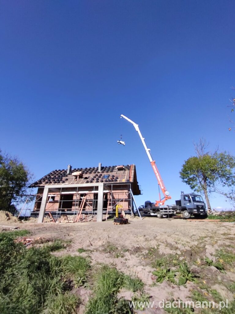 - montaż za pomocą dźwigu ciesielskiego o zasięgu 32m