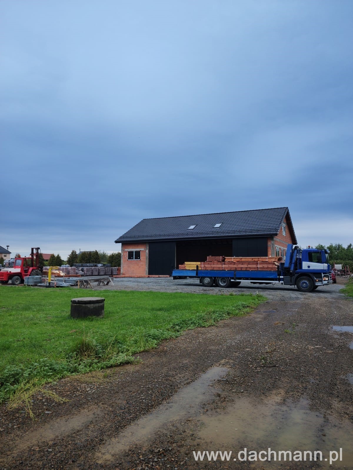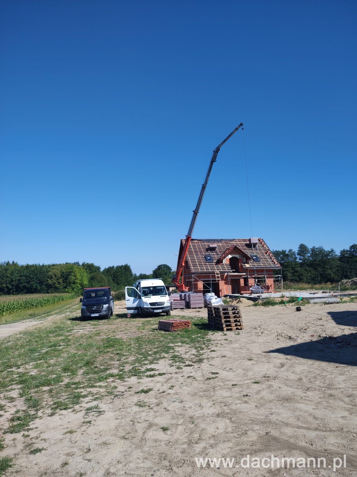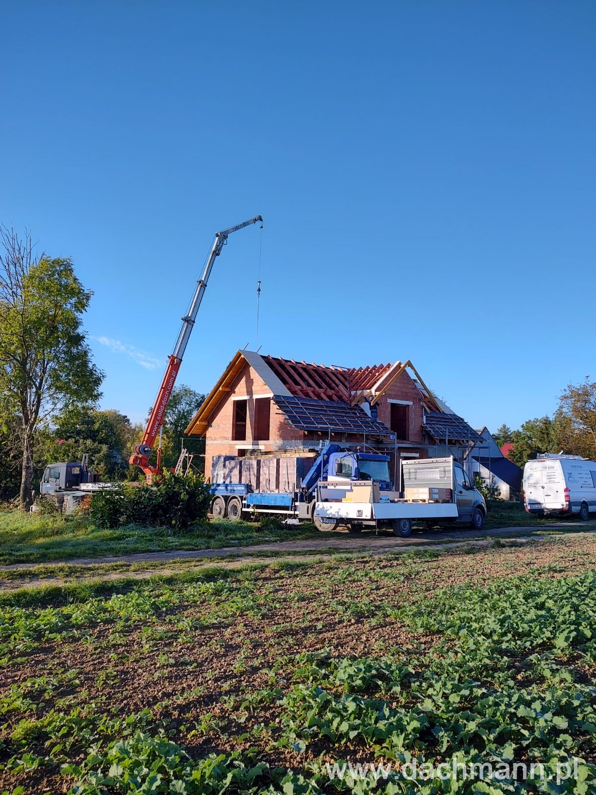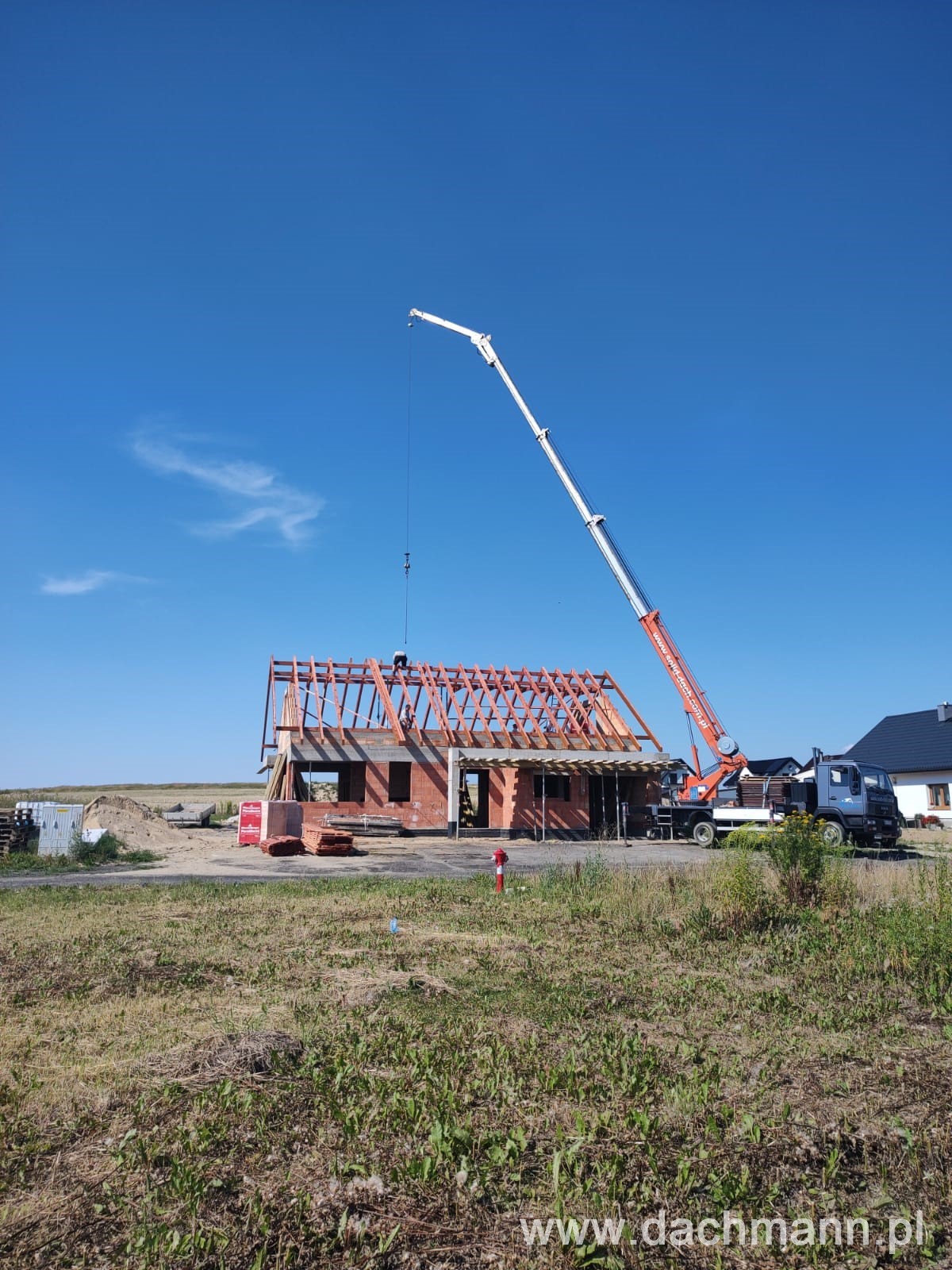 - montaż za pomocą dźwigu ciesielskiego o zasięgu 32m